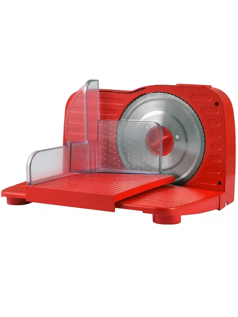 Гастрономическая машина Gemlux GL-MS-170R – это компактное устройство полуавтоматического типа, предназначенное для нарезки колбасы и других видов мясной гастрономии, полутвердых сыров, хлеба, овощей и фруктов на домашней кухне. Слайсер оснащен ножом диаметром 170 мм из нержавеющей стали с зубчатым лезвием и кареткой из пластмассы. Продукт фиксируется на каретке при помощи пластмассового толкателя с зубцами. Максимальные размеры продукта – 170х140 мм. Толщина нарезки регулируется от 0 до 15 мм. Нож и каретка легко снимаются для очистки. Корпус ломтерезки изготовлен из красного пластика и снабжен четырьмя резиновыми ножками с присосками, обеспечивающими максимальную устойчивость и безопасность в процессе работы.